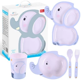 BOCIOLAND Zestaw Naczyń Dla Dzieci 5 Elementów SŁONIK Dla Maluszka