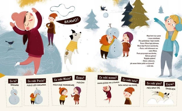 Zabawa z tą książką jest wsparciem dla rozwoju tych właśnie umiejętności językowych.