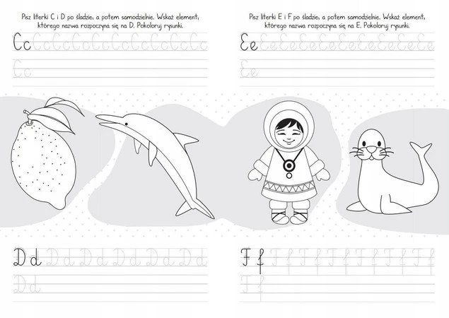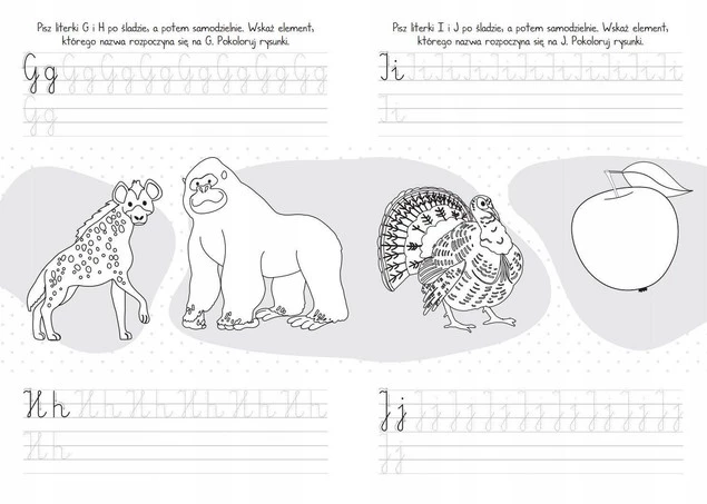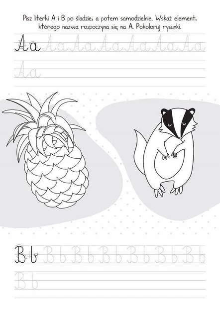 Dziecko uczy się pisać literki płynnie i starannie, zgodnie z instrukcją, po śladzie, a potem całkowicie samodzielnie. Zaś sympatyczne rysunki do kolorowania wpływają na jego sprawność manualną i grafomotoryczną, ćwiczą kojarzenie elementów i słów, są doskonałą rozgrzewką, a także świetną zabawą!