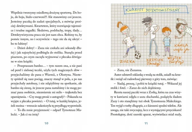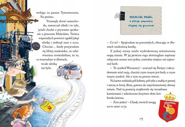 Kama, Zuza, Krzysiek i Wojtek mają ją zacząć od spotkania z ulubionym pisarzem, ale Na miejsce docierają spóźnieni, a ich idol dostaje wiadomość o zaginięciu czegoś bardzo cennego i wybiega w popłochu, gubiąc kartkę z podejrzaną treścią. I to pierwsza z łamigłówek, na które detektywi trafią, poznając zakamarki stolicy. Czas leci, miasto tętni życiem, zagadki się mnożą Czy tropiciele odnajdą zieloną teczkę?