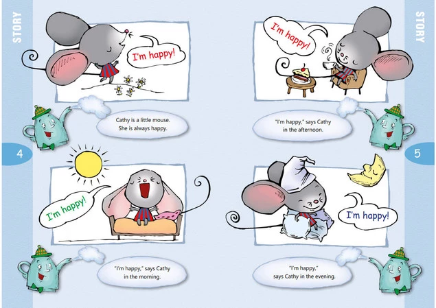 Pan Czajniczek jest prawdziwym angielskim imbryczkiem, który uwielbia snuć opowieści. I dlatego codziennie, o piątej po południu, gdy nadchodzi czas na podwieczorek, wesoło bucha parą i opowiada zabawne historie w języku angielskim. O czym opowie tym razem? Cathy jest małą wesołą myszką, która często się uśmiecha. Ale gdy nadchodzi noc, robi się smutna, bo boi się ciemności! A Cathy bardzo nie lubi się bać. Pewnego dnia postanawia to zmienić i prosi o pomoc swoich przyjaciół. Przekonajcie się sami, jak skończy się ta historia