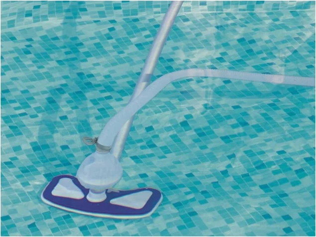 W skład tego zestawu wchodzi aluminiowy kij teleskopowy o długości maksymalnej 279 cm, dzięki czemu bez problemu wyczyścisz nawet większe baseny. Podstawowym wyposażeniem czyszczącym jest końcówka odkurzacza, która po podłączeniu do pompy filtrującej zbiera nieczystości w specjalnej komorze.