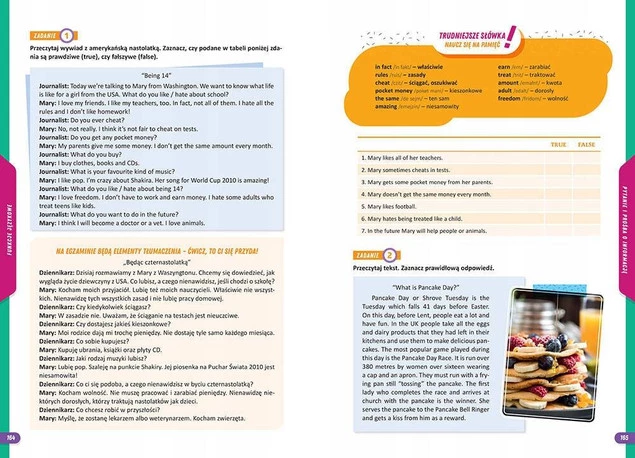 Uczeń znajdzie tu liczne ćwiczenia dotyczące słownictwa z różnych dziedzin, ćwiczenia gramatyczne wraz ze starannie wytłumaczoną teorią, dział językowy omawiający codzienne sytuacje komunikacyjne. Zadbano o to, by ćwiczenia odwzorowywały wszystkie typy zadań, jakie pojawiają się na sprawdzianach i egzaminach.
