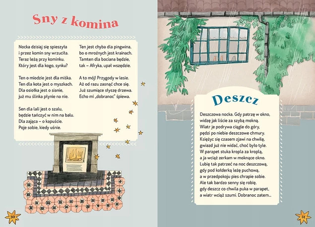 To zbiorek wierszy o magicznej krainie snu, pełen fantazji i ciepła. Dzieci, zasłuchane w opowieści o śpiących wioskach, miastach, gwieździstym niebie, księżycu i szumie fal, chrapiących zwierzątkach, z rozkoszą wtulą się w poduszki. Gwarantujemy, że ich sen będzie spokojny, dający siłę do odkrywania świata!