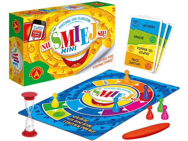 Towarzyska gra planszowa, w której co chwila wybuchają salwy śmiechu. Kłopot w tym, że aby zdobyć przewagę nad rywalami, trzeba jak najdłużej zdołać zachować powagę. Czy zdołasz nie roześmiać się jako pierwszy?