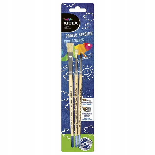 Pędzle szkolne 3szt Kidea blister DERFORM