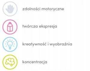 Czterolatek jest uważnym obserwatorem otaczającego go świata, a zabawa z kredkami sprawia mu mnóstwo radości. Zadania ćwiczące coraz bardziej precyzyjne ruchy dłoni doskonalą zdolności motoryczne i przygotowują do przyszłej nauki pisania. Kolorowanie i rysowanie detali to jeden z etapów twórczej podróży.