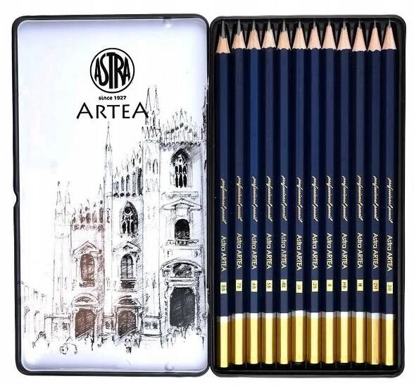 Złóż zapytanie o cenę hurtową produktu |Zestaw ołówków do szkicowania Artea mix 12 sztuk metalowym pudełku Astra