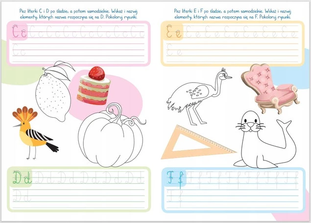 Rozbrykane zwierzaczki, fikuśne kolorowanki i przeróżne smaczki. A strony barwne, niepowtarzalne i wyjątkowe. Rozgrzejmy rączkę. Poznajmy literki. Nauczmy się pięknie i poprawnie pisać. Kolorujmy, rysujmy i się bawmy...