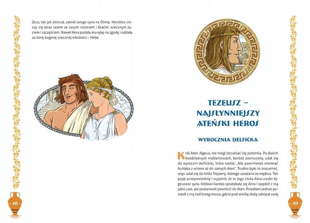 Mały odbiorca dowie się między innymi, jak według Greków powstał świat, jak nazywają się najważniejsi bogowie, kto stworzył człowieka, a także pozna przygody najpotężniejszych greckich herosów - Heraklesa i jego dwanaście niesamowitych zadań do wykonania, Tezeusza i jego bohaterską walkę z Minotaurem oraz dzieje miłości Orfeusza i Eurydyki. Znajomość tych opowieści przyda się kiedyś w szkole!