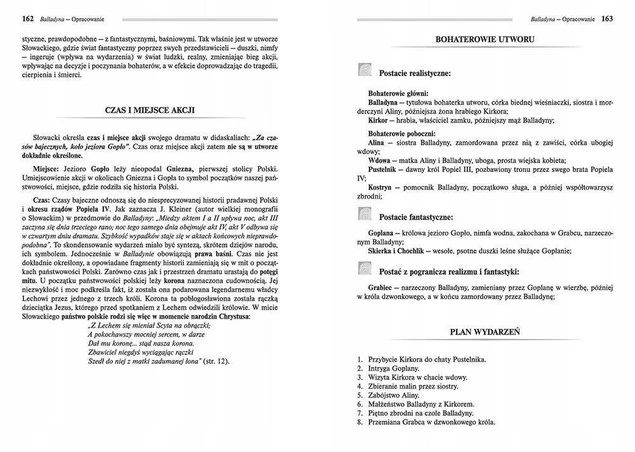 Wydanie Balladyny kompletne bez skrótów i cięć w treści. W tym wydaniu znajdziesz odpowiedzi na pytania z podręcznika - "pewniak na teście", czyli wskazanie zagadnień, które zwykle pojawiają się w pytaniach z danej lektury we wszelkich testach sprawdzających wiedzę, a także w podręcznikach i na klasówkach. Książka zawiera pełen tekst lektury. Na końcu książki zamieszczono opracowanie, w którym znajduje się bardzo szczegółowe streszczenie oraz drugie skrócone, ułatwiające szybkie przygotowanie się przed lekcją. Opracowanie zawiera ponadto plan wydarzeń, wnikliwie wyjaśnioną problematykę oraz szerokie charakterystyki bohaterów.