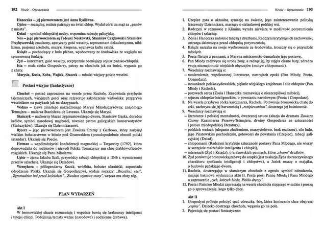 Wydanie Wesela kompletne bez skrótów i cięć w treści. W tym wydaniu znajdziesz odpowiedzi na pytania z podręcznika - "pewniak na teście", czyli wskazanie zagadnień, które zwykle pojawiają się w pytaniach z danej lektury we wszelkich testach sprawdzających wiedzę, a także w podręcznikach i na klasówkach. Książka zawiera pełen tekst lektury. Na końcu książki zamieszczono opracowanie, w którym znajduje się bardzo szczegółowe streszczenie oraz drugie skrócone, ułatwiające szybkie przygotowanie się przed lekcją. Opracowanie zawiera ponadto plan wydarzeń, wnikliwie wyjaśnioną problematykę oraz szerokie charakterystyki bohaterów.