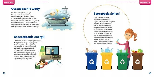 Proste i łatwe do zrozumienia wierszyki podzielone na grupy tematyczne prezentują ciekawe zagadnienia z wielu dziedzin - są tu informacje o kosmosie i Ziemi, o Polsce i jej najważniejszych miastach, o polskich zwierzętach, o porach roku i zjawiskach przyrody, o dobrych manierach i zasadach bezpieczeństwa.