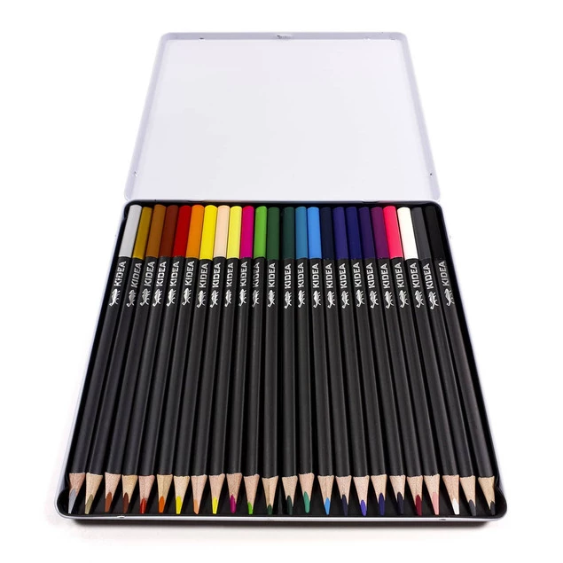 Kredki 24 kolory trójkątne w metalowym pudełku Kidea