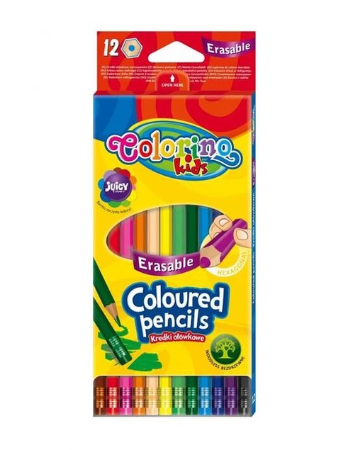 Złóż zapytanie o cenę hurtową produktu |Kredki ołówkowe 12 kolorów heksagonalne z gumką Colorino Kids 87492