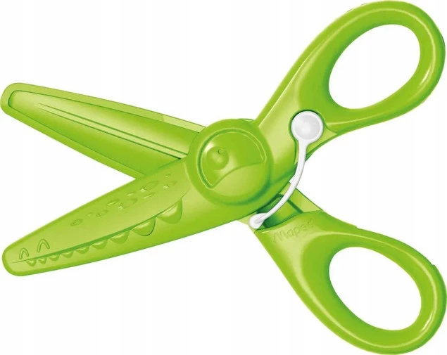 Plastikowe nożyczki kreatywne KIDICRAFT dla młodszych dzieci. Trzy rodzaje ostrzy: proste, fale i zygzaki. Trzy kolory i motywy na obudowie nożyczek: słonik, krokodyl i rekin. Bezpieczne, nie tną skóry, włosów ani ubrań, nie przewodzą prądu. Najbardziej lubiany przez dzieci wzór zygzak wbudowany w obudowę z klipem, który redukuje wysiłek niezbędny do cięcia. Blister 3 sztuki.