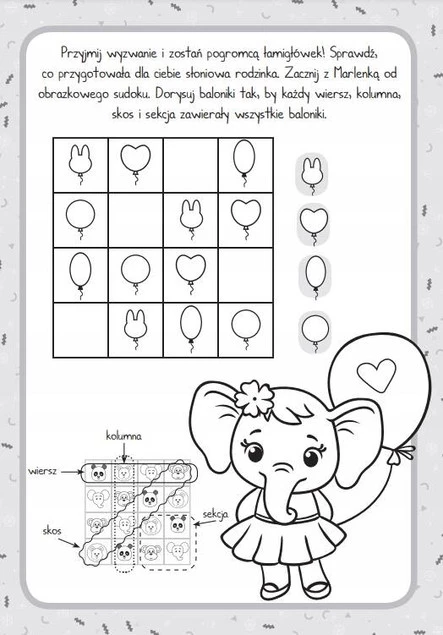 Pasjonujący zestaw łamigłówek! Oryginalne sudoku z obrazkami, nieszablonowe ciągi logiczne, sekwencje symboli oraz cała gama kreatywnych zabaw pobudzają logiczne myślenie, ćwiczą spostrzegawczość i pamięć. Są doskonałą gimnastyką dla mózgu, a także świetną przygodą!