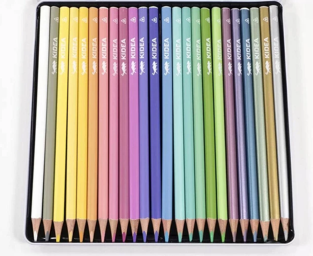 KIDEA Kredki pastelowe trójkątne w metalowym pudełku 24 kol
