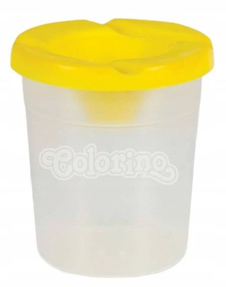 Kubeczek do płukania pędzli. Posiada specjalną pokrywkę z blokadą wylania, która uniemożliwia wylanie wody w przypadku przewrócenia się kubeczka. Kolorowa pokrywka z dwoma miejscami na odłożenie pędzelków.