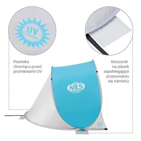 Plażowanie, to jedna z ulubionych form letniego wypoczynku. Dobrze mieć ze sobą coś, co pozwoli odpocząć chwile od promieni słonecznych, zapewni cień, a jednocześnie osłoni od wiatru. Najlepszym rozwiązaniem, będzie namiot plażowy. Taki, który łatwo się rozkłada, jest wytrzymały i funkcjonalny. Takie właśnie są, oryginalne namioty marki NILS CAMP. Przedstawiamy model NC3173.