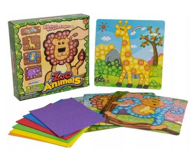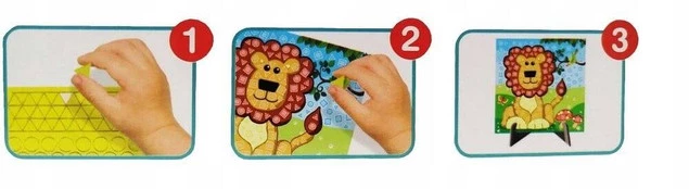 Mięciutkie, piankowe kafelki i kolorowe obrazki ze zwierzątkami zachęca co pracy każdego malucha. Dziecko podczas wyklejania mozaiki poznaje kolory i kształty, rozwija swoją motorykę małą oraz uczy się cierpliwości. Zabawa wyklejankami rozwija zdolności manualne dziecka. Kreatywna zabawa na długie godziny, bez bałaganu. Zestaw do nauki wyklejania to świetne ćwiczenie precyzji i koncentracji, gdyż dziecko skupia uwagę na zadaniu.