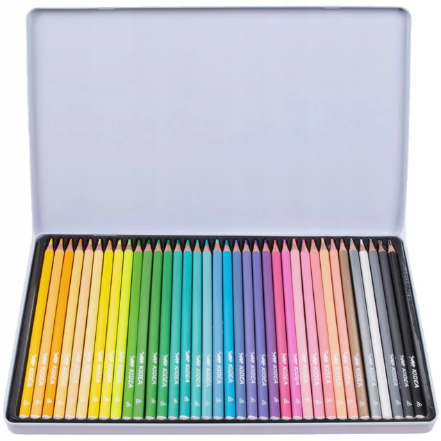 KIDEA Kredki pastelowe trójkątne w metalowym pudełku 36 kol