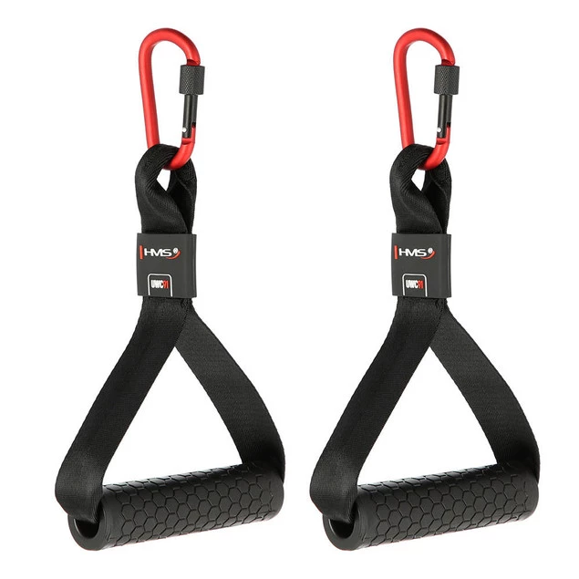UWC91 HMS to podwójne uchwyty, przeznaczone do treningu na wyciągu górnym lub dolnym, lub do przymocowania taśm treningowych. Można wykorzystać je do całej gamy ćwiczeń na różne grupy mięśniowe górnych partii ciała, zaczynając od małych grup jak biceps i triceps, przez mięśnie naramienne, aż do pleców i klatki piersiowej.