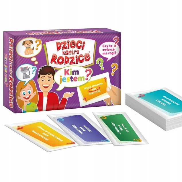 Kim jestem? Listonoszem, a może Kopciuszkiem? Czy to jest mężczyzna? Czy to zwierzę ma sierść? Czy to coś bywa u nas w domu? Czy ten człowiek lubi rysować? Wspaniała rodzinna rozrywka oparta na wyobraźni, sprycie i zgadywaniu. Dzieci rywalizują z Rodzicami! W grze znajdziecie wiele ciekawych haseł. Bawcie się dobrze, zadawajcie wesołe pytania, aby poznać odpowiedź kim jest ta osoba!