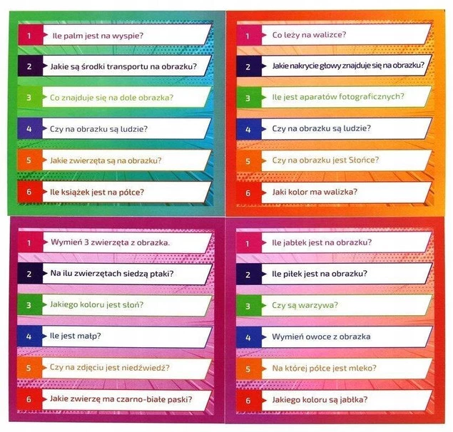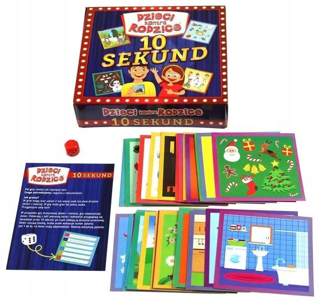 Wesoła gra rodzinna, w której dzieci rywalizują z rodzicami! Masz dziesięć sekund by przyjrzeć się obrazkowi i zapamiętać co na nim jest. Następnie odpowiedz na pytanie dotyczące obrazka i wygraj! Bawcie się dobrze!