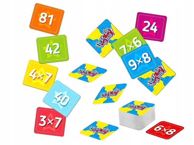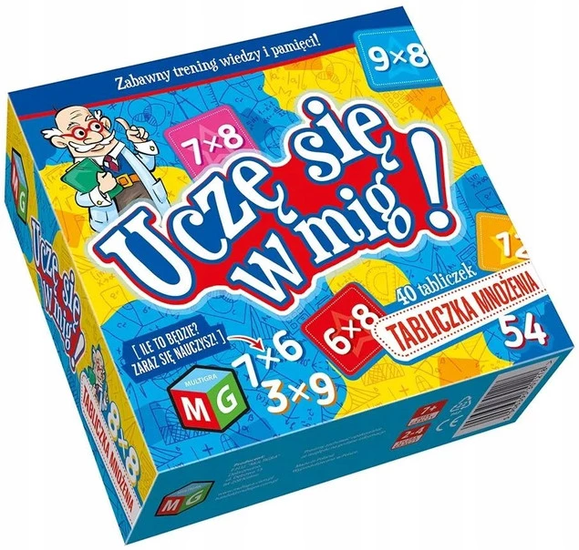 UCZĘ SIĘ W MIG - TABLICZKA MNOŻENIA to wspaniała gra, która rozwinie pamięć i spostrzegawczość Twojego dziecka. Dodatkowo w sposób przyjemny i zabawny nauczy tabliczki mnożenia, w zasadzie niepostrzeżenie. W grze wygrywa ten, kto najlepiej zapamięta położenie par mnożnej i mnożnika oraz wyników mnożenia, odkrytych na chwilę, spośród wszystkich ilustrowanych tabliczek leżących na stole rewersem do góry. Z tą grą kończą się wszelkie problemy z matematyką. Odkryj świat liczb i zobacz, jak prosta może być nauka.