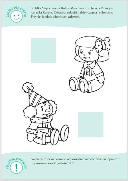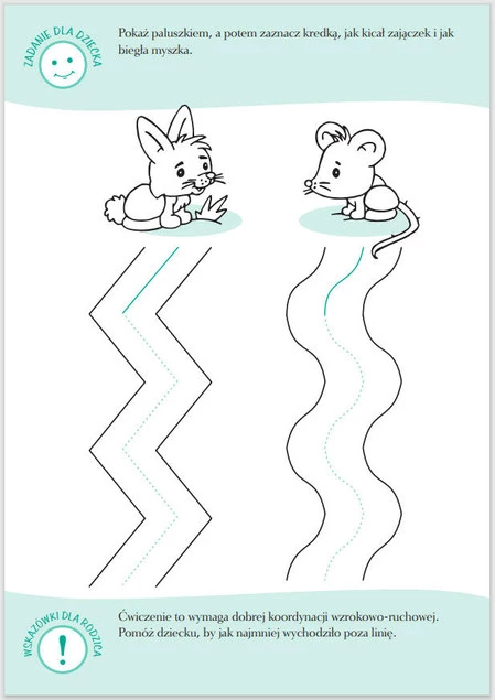 Dodatkowym atutem książek są wskazówki dla rodziców, które opisują cel ćwiczenia i wyjaśniają, jak należy pomóc dziecku przy danym zadaniu.