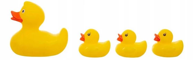 4 śliczne kaczuszki od „akuku”. Każde dziecko musi mieć w kąpieli taką rodzinkę. Nasz zestaw składa się z 4 gumowych zabawek: mama kaczka i 3 małe kaczuszki.