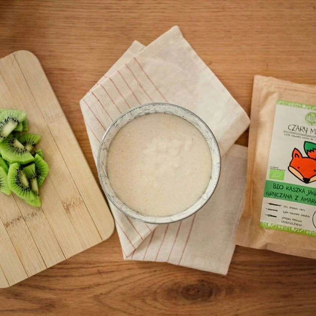 Skład: ekologiczna kaszka jaglana (40%), ekologiczna kaszka gryczana (30%), ekologiczna z amarantusa (30%)