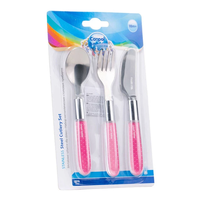 Canpol babies metalowy zestaw sztućców dla dzieci różowy