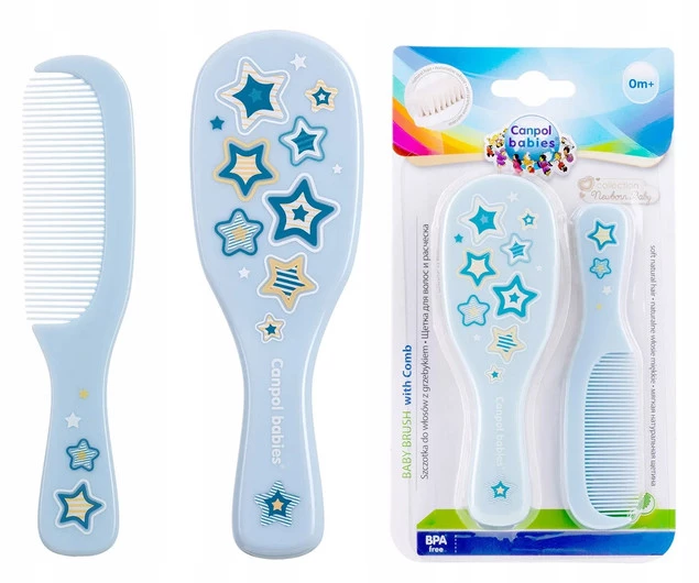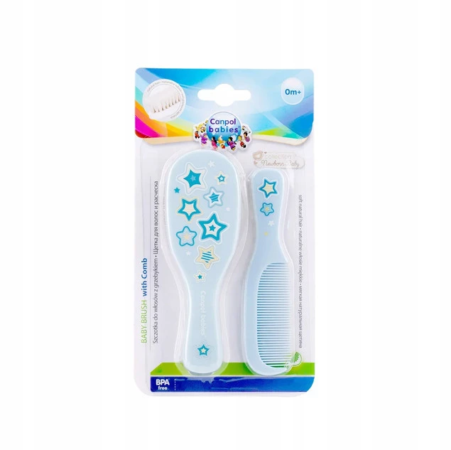 Canpol babies szczotka i grzebień z miękkim, naturalnym włosiem NEWBORN BABY niebieska