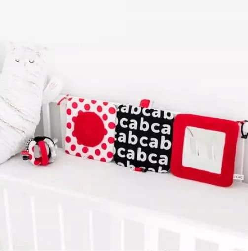 Kontrastowe lusterko z kolekcji SENSORY TOYS posiada elementy interaktywne, które zajmą dziecko na długi czas. Wspiera rozwój maluszka już od pierwszych dni. Stymuluje wzrok dzięki czerwieni i czerni, kolorom które niemowlę widzi jako pierwsze. Trenuje zdolności motoryczne i manualne, dzięki różnym fakturom i wystającym tasiemkom.