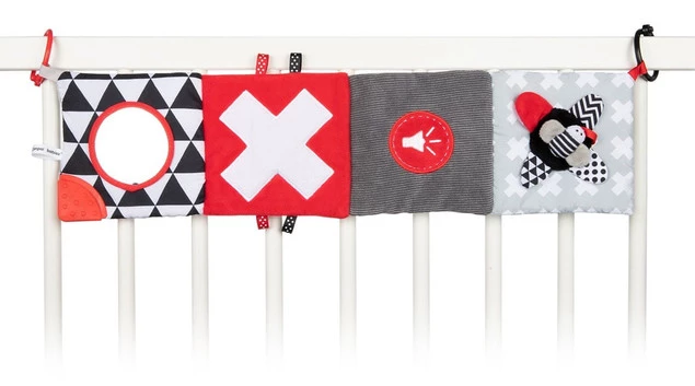 Kontrastowa książeczka edukacyjna z kolekcji SENSORY TOYS kryje wiele niespodzianek, które zajmą dziecko na długi czas. Wspiera rozwój maluszka już od pierwszych dni. Stymuluje wzrok dzięki czerwieni i czerni, kolorom które niemowlę widzi jako pierwsze.
