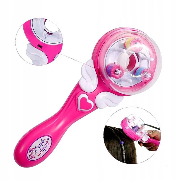 Poręczny zaplatacz do włosów dla dziewczynek. Dzięki tej oplotce będziemy mogli opleść kosmyk 3 kolorami nitek. Włosy będą wyglądać zjawiskowo i oryginalnie.
