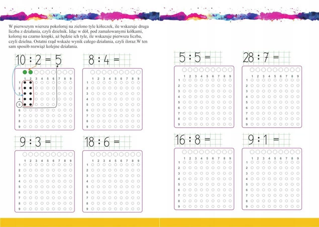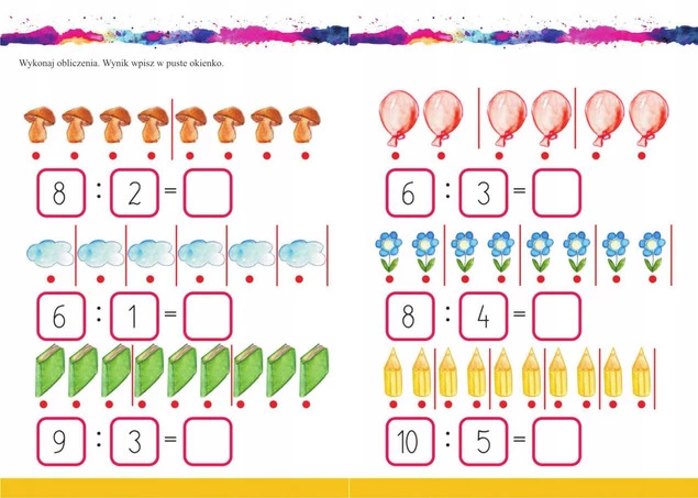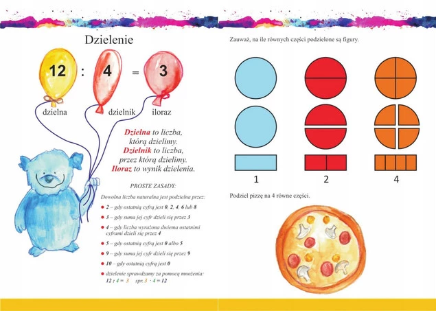 Matematyka. Dzielenie to wspaniała książka dla dzieci z klas I-III, które postawiły już pierwsze kroki w świecie matematyki. Ciekawe zadania pozwolą dziecku rozwinąć podstawowe umiejętności matematyczne oraz zmienią naukę w świetną zabawę.