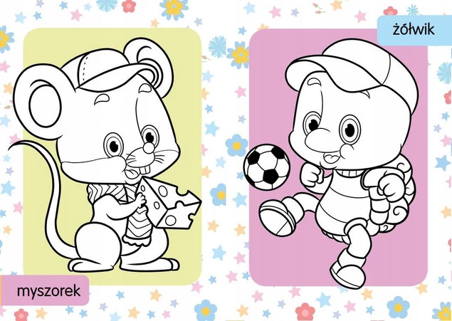 W środku: projekty do kolorowania i zestaw zmywalnych tatuaży (wzory kolorystyczne).