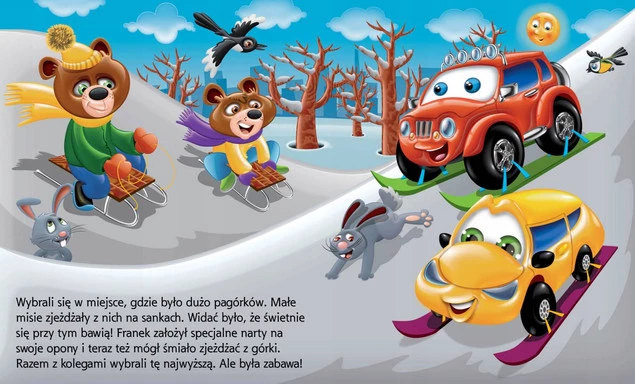 Poczytaj o sympatycznym czerwonym samochodziku Franku i dowiedz się, jak rewelacyjnie spędza czas zimą.
