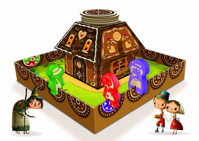 - 3 drewniane pionki (Jaś, Małgosia, Baba Jaga),