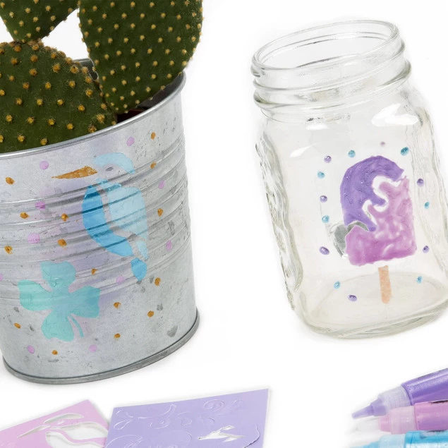 Szablony dołączone do zestawu pomogą tworzyć precyzyjne dzieła sztuki.