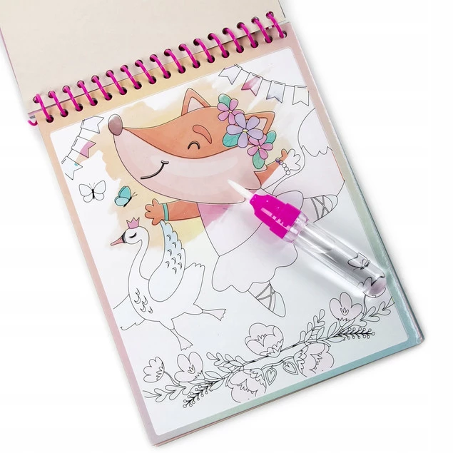 W zestawie znajduje się aż 6 kolorowanek z baletnicami oraz pisak wodny.