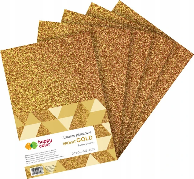 Złóż zapytanie o cenę hurtową produktu |Arkusze piankowe A4 5szt brokat złote HAPPY COLOR