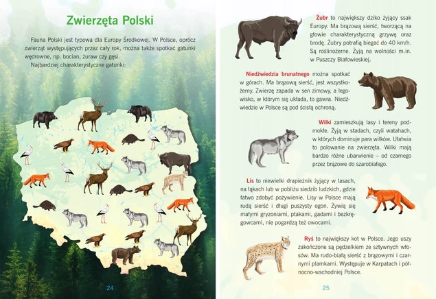Atlas Polski dla dzieci to książka, w której znajdziesz mnóstwo informacji o naszym kraju. Poznasz miejsce Polski w Europie, dowiesz się, jakie są polskie miasta i województwa, krainy geograficzne, jeziora, góry, rzeki, parki narodowe, zwierzęta i rośliny oraz atrakcje turystyczne. Przejrzyste mapy, ilustracje i zdjęcia pomogą ci w zdobywaniu wiedzy o twoim kraju.