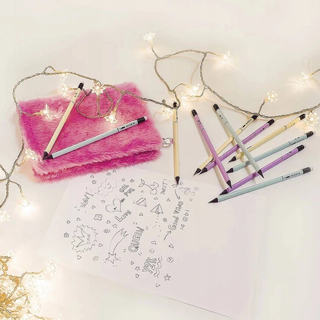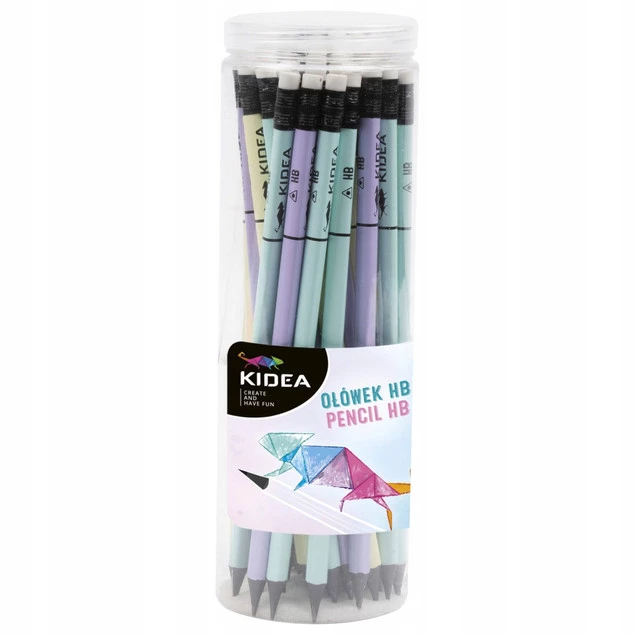 Ołówki premium w trzech pastelowych kolorach od Kidea. Niezwykle wytrzymale ołówki z niekruszącym się rysikiem HB, wykonane z tworzywa odpornego na upadki, zakończone gumką do mazania.