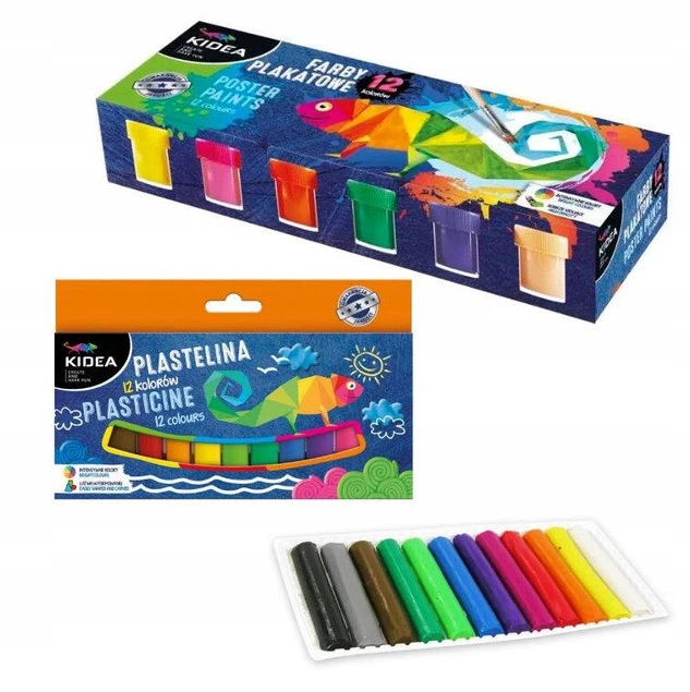 Zestaw farby 12 kolorów + plastelina 12 kolorów KIDEA.