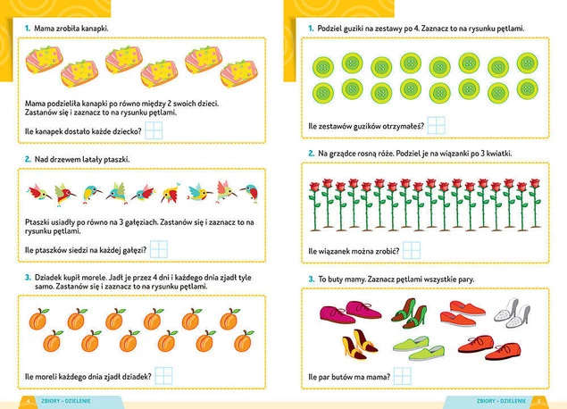 Książeczka Dzielenie to kolejna część serii eduBEZtrudu, wprowadzającej dzieci w tajniki liczenia i pisania.