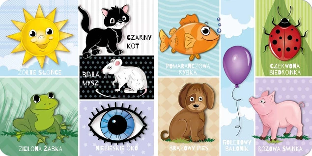 Książeczka rozwija, uczy i bawi. Ćwiczy spostrzegawczość, umiejętność mówienia, wzbogaca zasób słów i wiedzę o otoczeniu. Książeczka kartonikowa, z zaokrąglonymi rogami, w przyjaznym formacie dogodnym dla rączek dziecka, barwnie ilustrowana. Specjalna grafika dostosowana do wieku dziecka uczy koncentracji, stymuluje percepcję oraz wyobraźnię. Realistyczna tematyka w artystycznym ujęciu pomaga maleństwu w sposób fascynujący odkrywać świat. To pierwsza książeczka małego dziecka, która łączy naukę i zabawę budując więzi pomiędzy rodzicem i dzieckiem.